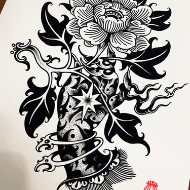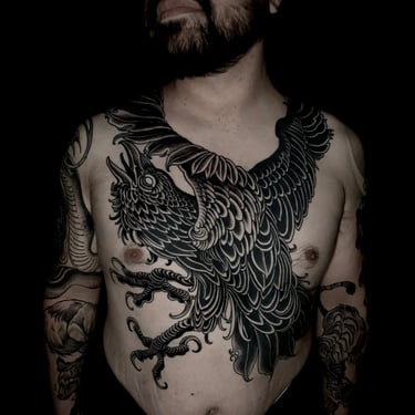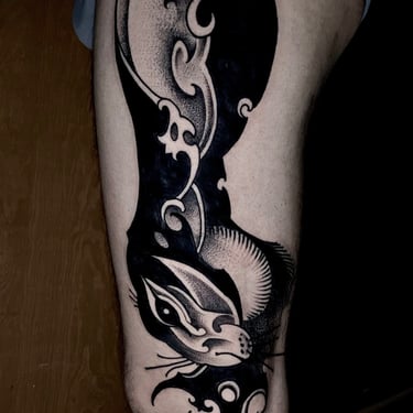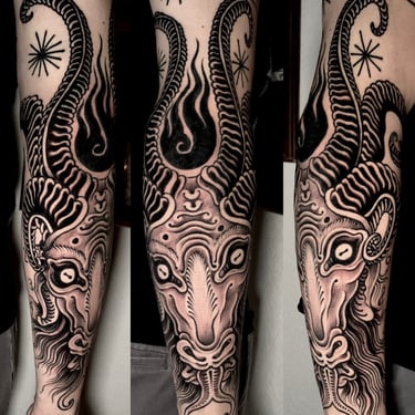 A lo largo de mi trayectoria me he dedicado a entender y explorar diferentes estilos integrándolos a las formas del tatuaje, desde el japonés, el neo-tradicional y el tradicional, hasta la abstracción. Intentando crear un lenguaje propio que me permita generar un diseño con permanencia en la piel, temáticamente atemporal y cada vez con más sentido anatómico. Enfocándome en el “black work” mis propuestas figurativas buscan lograr un balance de valores tonales y contrastes que le permitan al tatuaje permanecer a lo largo del tiempo y sostenerse en una línea sólida, con esta estilización, exploro estéticas obscuras y grotescas así como la ornamentación y formas orgánicas.
